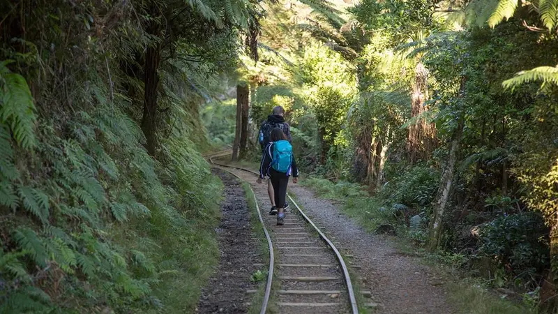 Historic gold-mining tunnels and gorge views on a short loop in Karangahake Gorge.