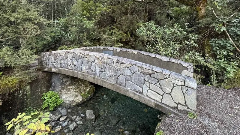 This easy walk, suitable for prams, takes you to a bridge where you can see a waterfall.