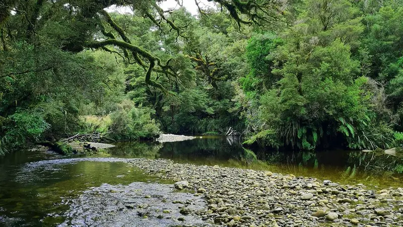 Follow a historic tramway through Tiropahi gorge to an open pakihi.