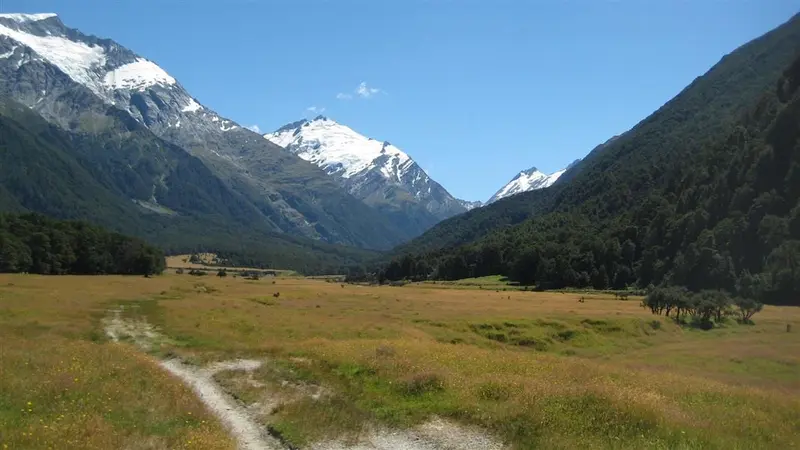 Following the river and with views of notable glaciers, the West Matukituki Valley track takes you through sections of open farmland, native forest, and grassy flats before finishing at the head of th
